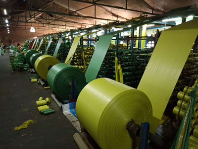公司引進目前塑編行業中的雙曲線小凸輪坳屬于節能技術的新型圓織機、高速平膜拉絲機等設備;同時擁有高速凹版彩印機。多功能復合機組,以及全自動裁切縫底機組的生產線。